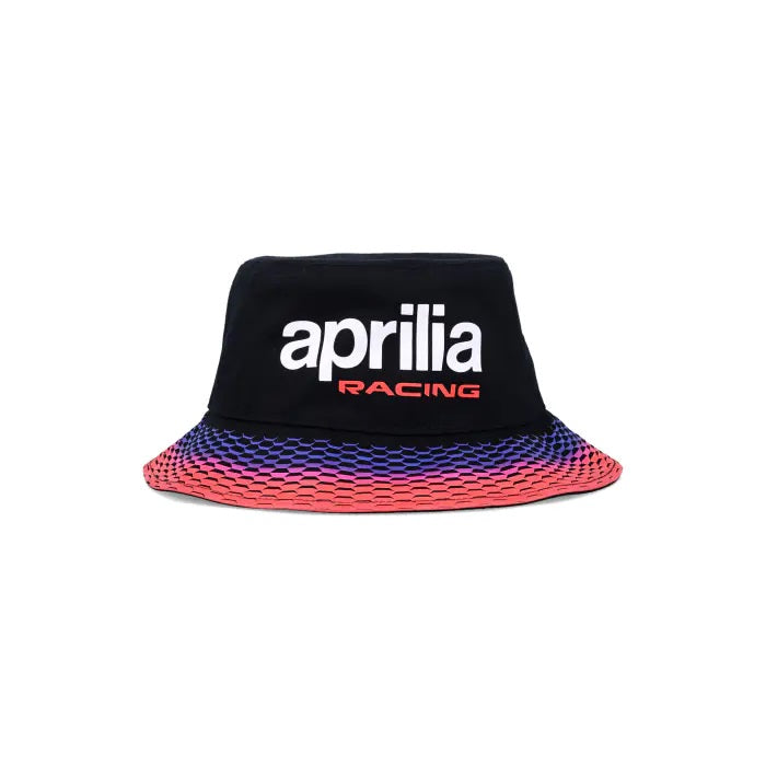Bucket hat from the official Jorge Martin dual Aprilia collection. Black base with printed logos and 'gradient' effect. Composition: 100% cotton.
